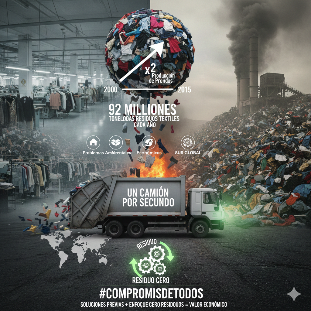 Hacia el residuo cero en la moda y el textil. Cada año, la humanidad genera entre 2.100 y 2.300 millones de toneladas de residuos sólidos urbanos, cifra que incluye desde alimentos hasta productos electrónicos y textiles. A nivel mundial, los residuos textiles ascienden a 92 millones de toneladas.