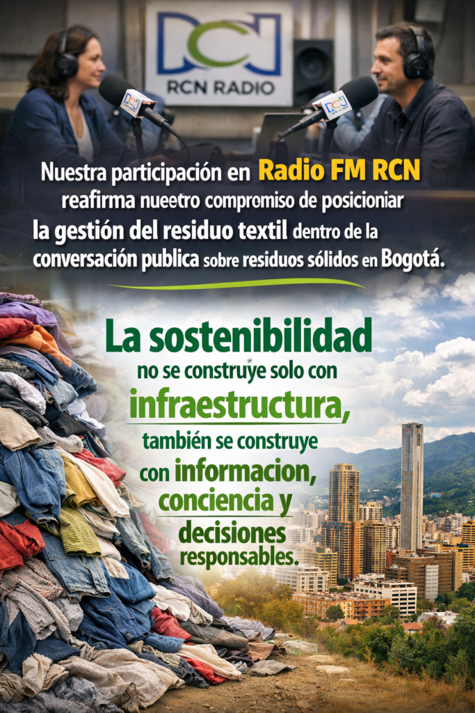 Nuestra participación en Radio FM RCN reafirma nuestro compromiso de posicionar la gestión del residuo textil dentro de la conversación pública sobre residuos sólidos en Bogotá.