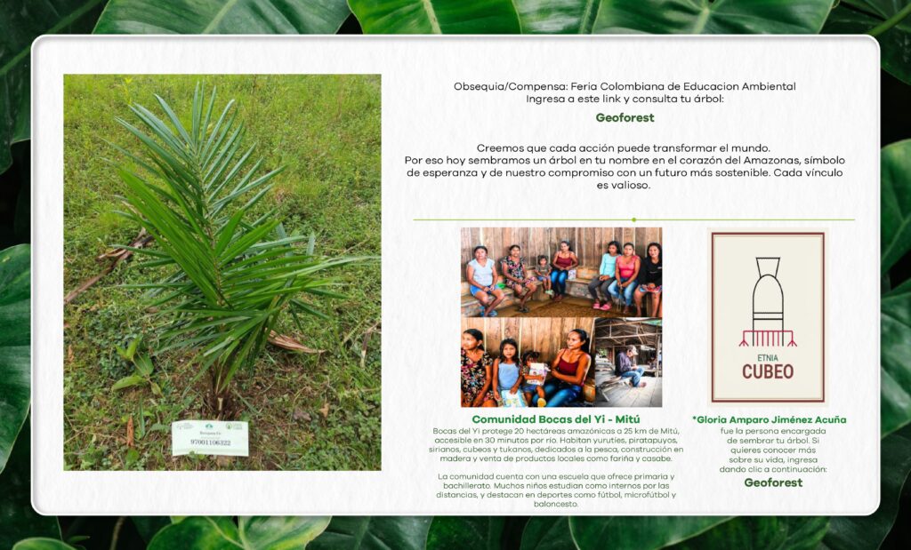 Este árbol fue sembrado en el resguardo indígena Bocas del Yi – Mitú, un territorio ubicado en el corazón del Amazonas, donde comunidades indígenas trabajan diariamente por la protección de sus tierras, su cultura y su entorno natural.
