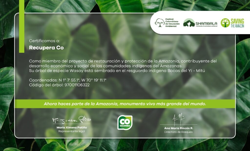 En Recupera Co creemos que cada acción cuenta. Que cada decisión, por pequeña que parezca, tiene el poder de generar un impacto real en el mundo. Como parte de nuestro compromiso con la sostenibilidad y la protección del medio ambiente, participamos en una iniciativa de restauración ambiental que permitió la siembra de un árbol en la Amazonía colombiana, uno de los ecosistemas más importantes del planeta.